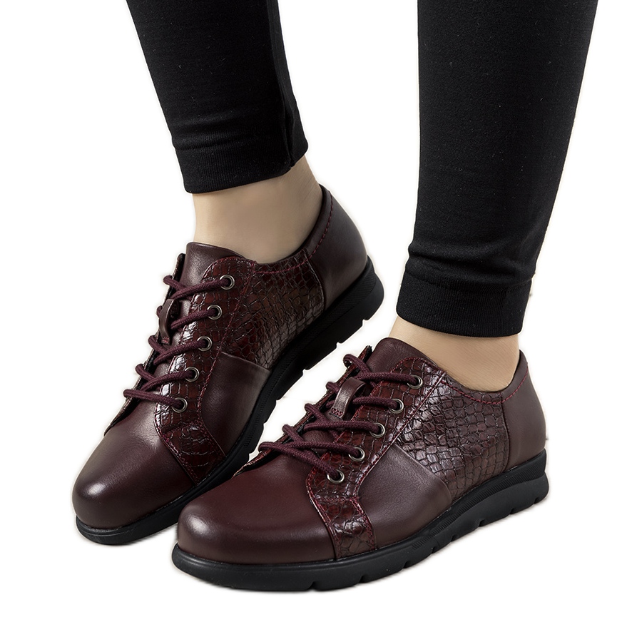 Vi presenterar vinröda Olmos damskor i en lyxig nyans av rött, vilket kommer att vara det perfekta komplementet till varje styling. Dessa skor är gjorda av ekologiskt läder av hög kvalitet och kännetecknas av eleganta krokodilläderinsatser, vilket ger dem en unik karaktär.