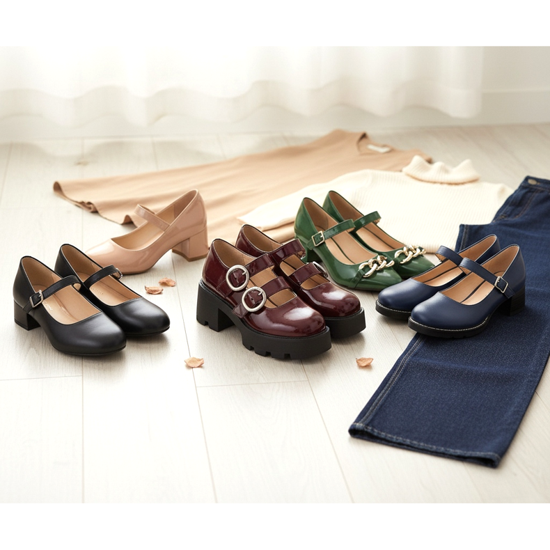 För fans av retrostil kommer Mary Jane med en rundad tå och en låg blockklack att vara ett perfekt val. Det här klassiska snittet för tankarna till modet från 1960-talet och passar perfekt till klänningar i A-linje, turtlenecks och raka byxor med vida ben.