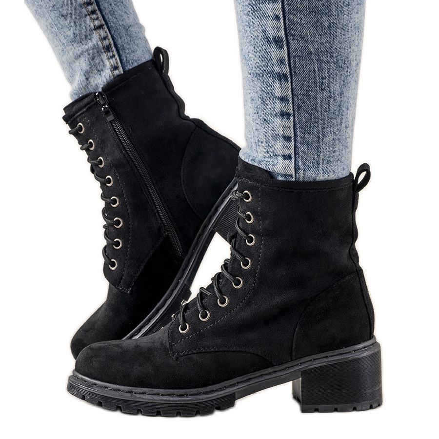 De eleganta och universella måste ha stövlar är gjorda av mocka ekologiskt läder i tidlös svart. Designen kombinerar en fashionabla, trappsula snitt med bekvämligheten med vardaglig användning - det är en idealisk modell för höst- och vintersäsongen, som du enkelt kan smälta in i många stilar.