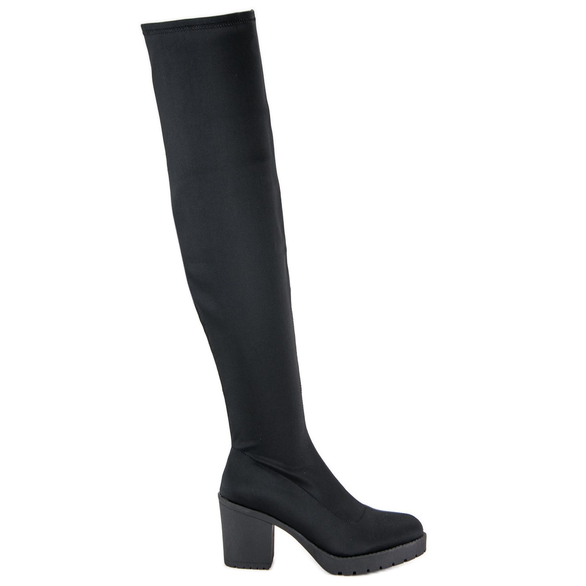 Hitta din stil med eleganta musketörer från Small Swan! Svarta, smala stövlar som slår över knät är perfekta för kalla dagar när du vill se chic ut men inte vill hantera kylan.