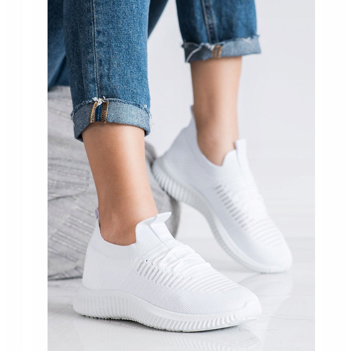 Gummisulan med slitbana ger utmärkt grepp och stabilitet på olika underlag. Tack vare den 3,5 cm höga plattformen får du ytterligare elegans utan att ge avkall på bärkomforten. Det är också värt att understryka att sneakersna finns i en universell vit färg, vilket gör dem lätta att matcha till många vardagsstilar.