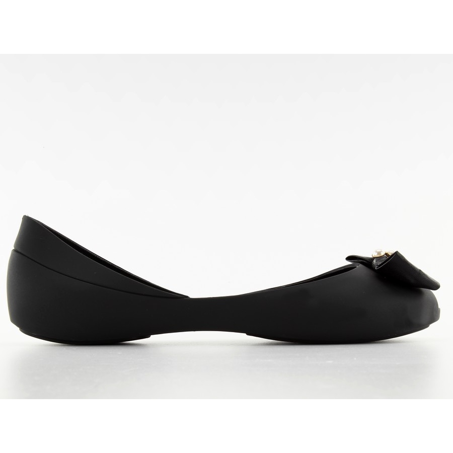 Charmiga, slip-on balettlägenheter gjorda helt av mjukt silikongummi. En perfekt modell för älskare av komfort och en minimalistisk, elegant look - klassisk svart med en subtil rosett gjord av fullnarvt eko-läder.
