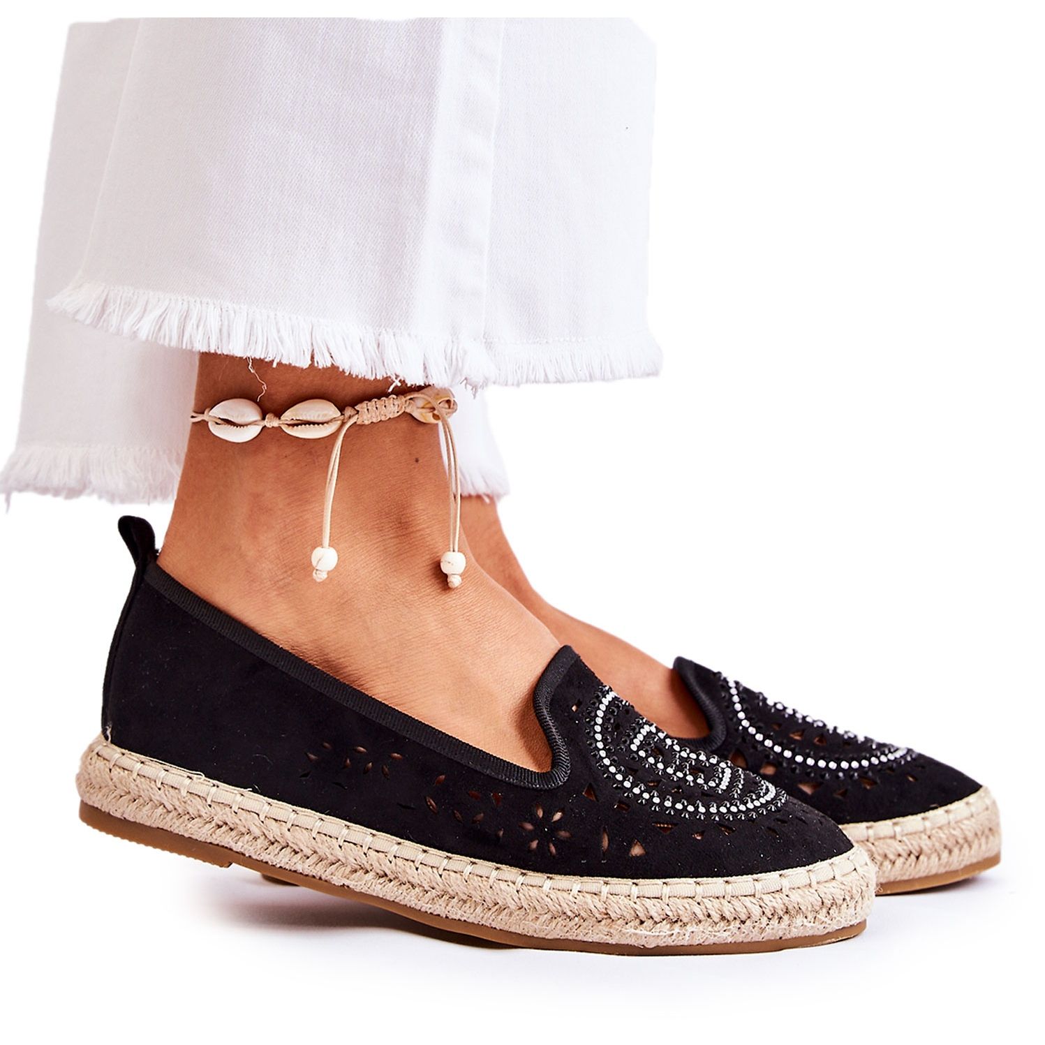 Information: S.Barski Meredith Black Openwork Slip-on Espadrilles dam svart