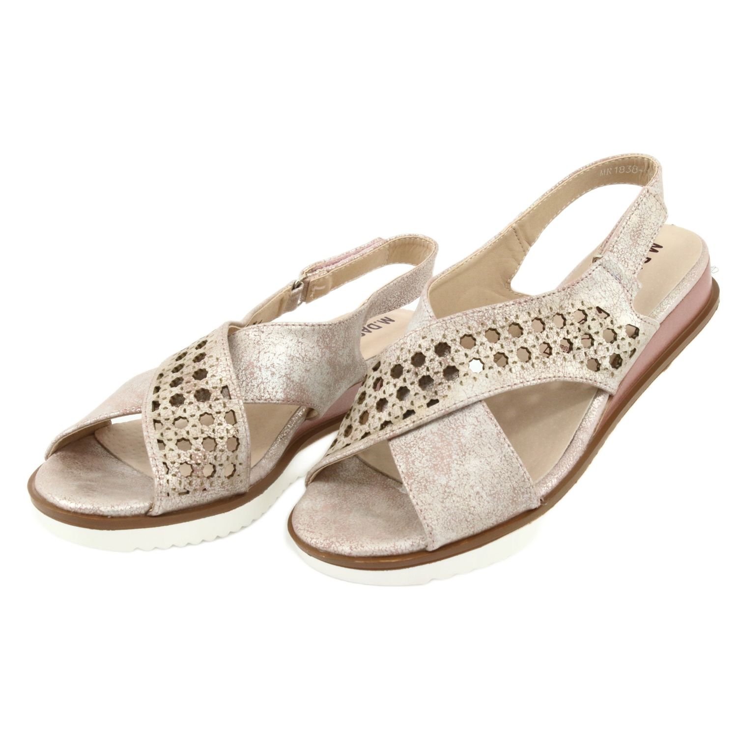 Information: M.Daszyński Metalliska rosa sandaler Daszyński 1838 grå