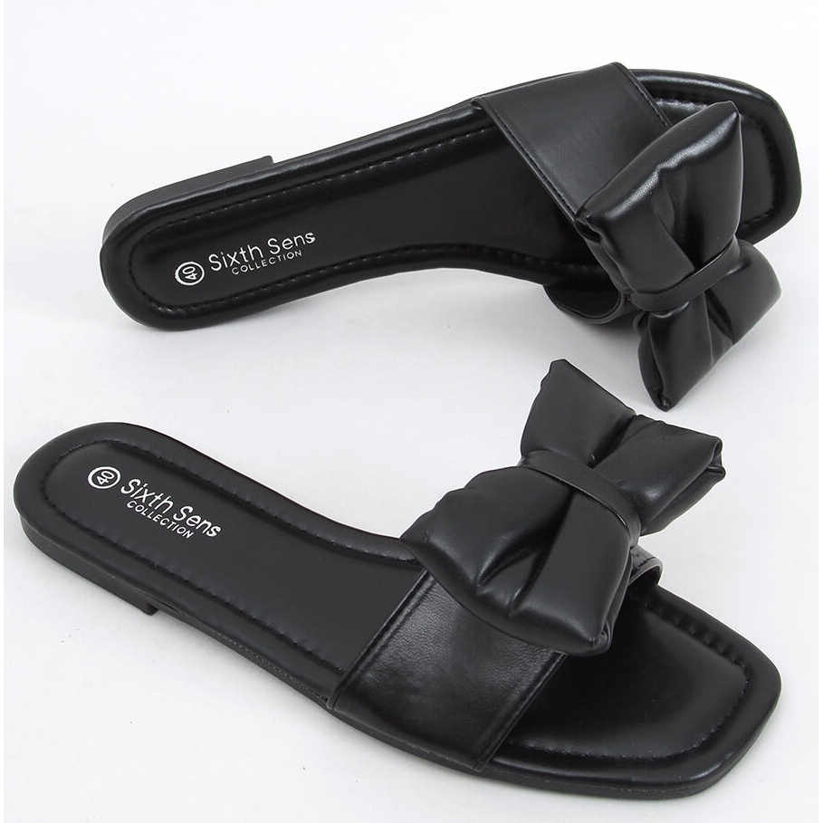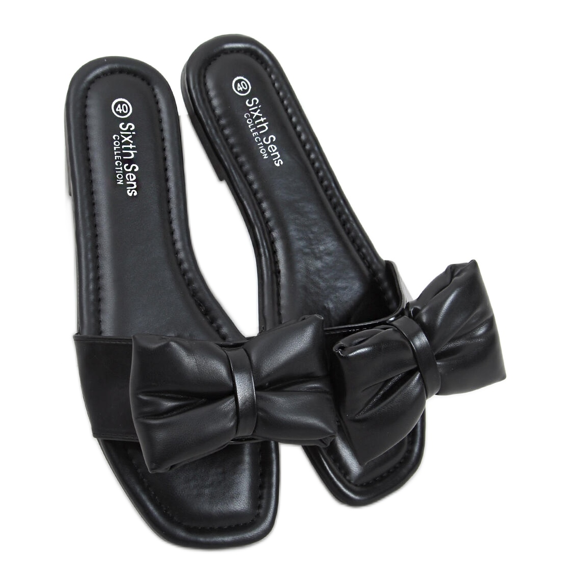 Mili Black flipflops med rosett är det perfekta valet för kvinnor som vill kombinera stil med komfort. Dessa svarta, fullnarvade damtofflor kännetecknas av ett elegant, fyrkantigt snitt och en förförisk rosett som attraherar ögat och tillför helheten en unik charm. Tack vare den platta hälen blir varje steg i dessa flip-flops lätta och bekväma.