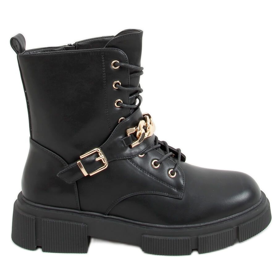 Vi presenterar svarta militärkängor med kedja HB-106 PU/SVART - snygga och moderna skor som säkert kommer att dra till sig uppmärksamhet! Dessa spetsarbetare med en tjock sula är ett perfekt val för varje fashionabel kvinna som vill lägga till lite militära accenter i sin garderob.