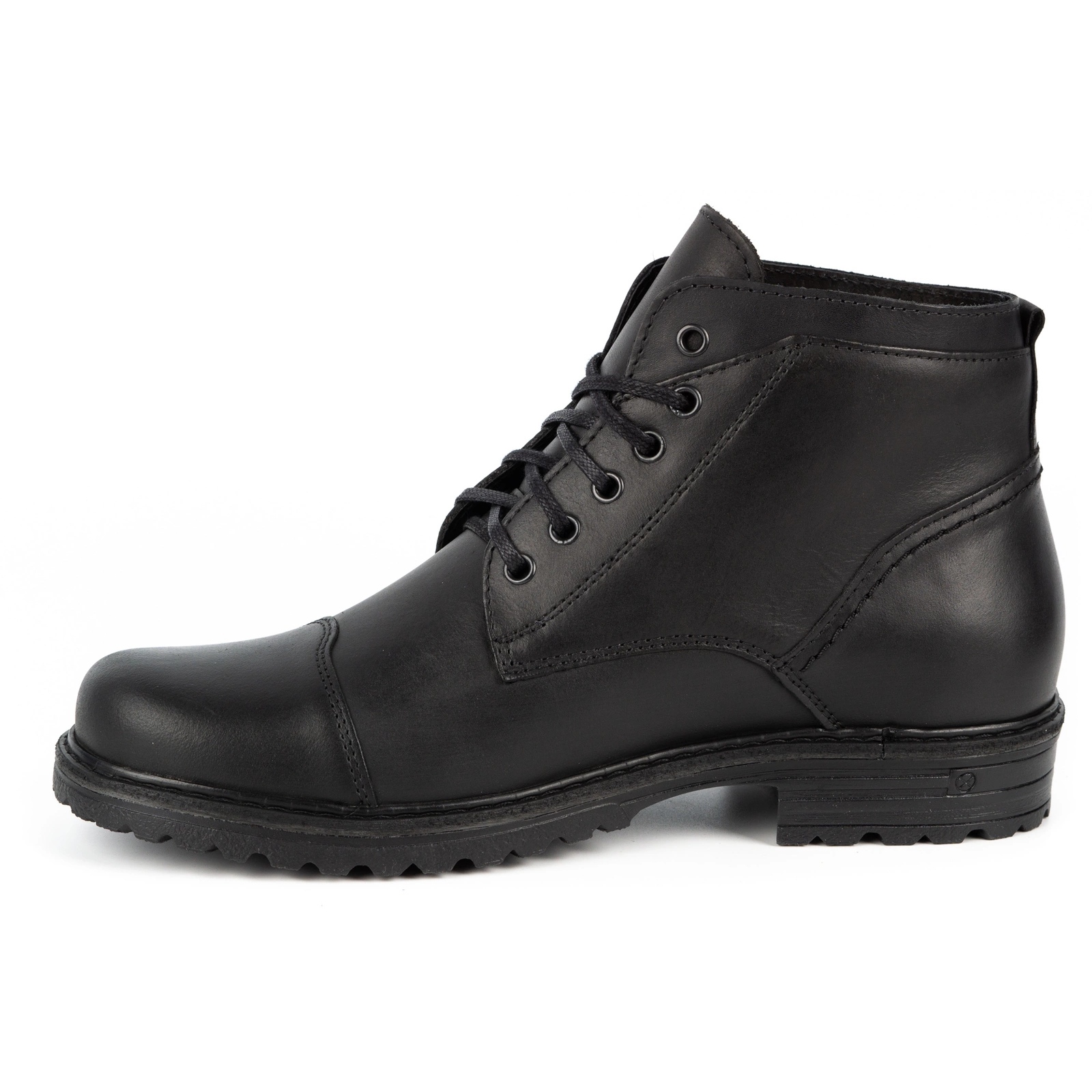 Fasta, klassiska stövlar med en militär snitt, skapade för män som värderar komfort, hållbarhet och tidlöst utseende. Det övre är tillverkat av naturläder, inre isolerad med en fårskinnrock - perfekt för svalare dagar. Skor sydd och limmade, snörda i 6 stygn, polsk produktion (producent: Olivier).