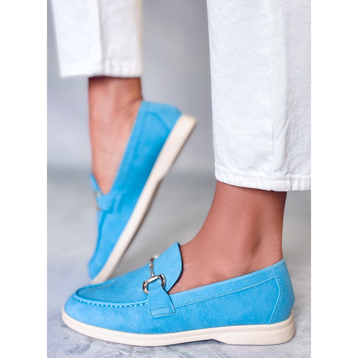 Oavsett tillfälle kommer dessa släta loafers att vara det perfekta komplementet till vilken outfit som helst - från avslappnad till mer elegant. Den beige sulan passar perfekt till den blå färgen och skapar en harmonisk duo.