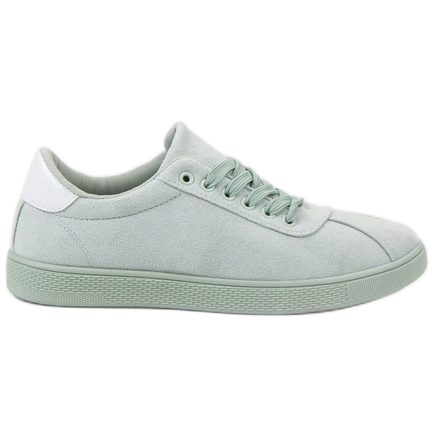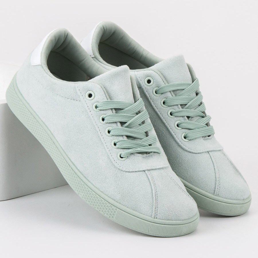 Upptäck en ny dimension av komfort och stil med mintfärgade snörskor från Ideal Shoes. Dessa eleganta sneakers, gjorda av högkvalitativt material som imiterar mocka, kombinerar moderiktig design och komfort att bära, perfekt för dagligt bruk. Tack vare den platta, 2 cm tjocka gummisulan kommer dina fötter att kännas lätta och bekväma oavsett tillfälle.