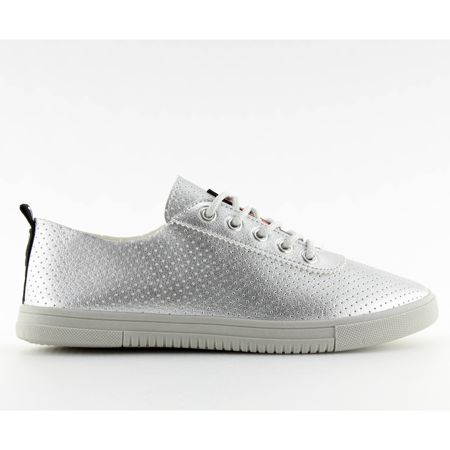 Deras smala form gör att de subtilt framhäver benlinjen, och den runda tån ger feminin charm. Dessa sneakers finns i en elegant nyans av grått och silver, som enkelt kombineras med en mängd olika stilar, från casual till mer elegant.