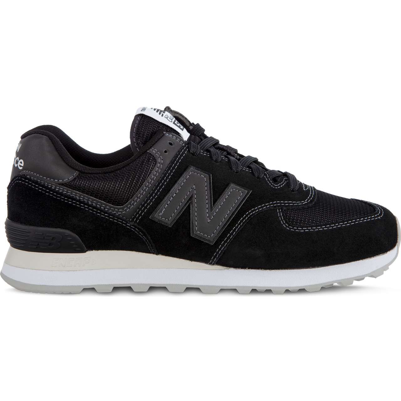New Balance ML574ETA Black - klassiska herrsneakers som kombinerar tidlös design med vardagskomfort. Svarta, låga skor med ovandel i mocka med luftiga mesh-inlägg ger en elegant och samtidigt sportig look som kommer att fungera bra i både urbana stilar och vardagliga tillfällen.