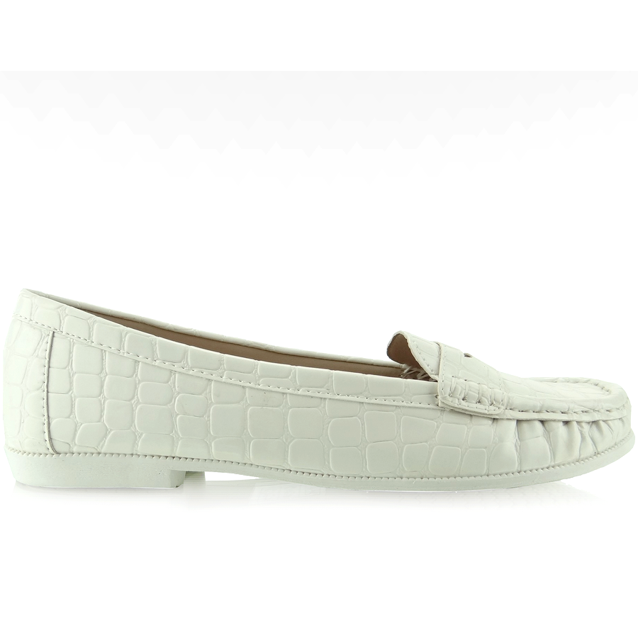 Detaljer: Moccinsins för kvinnors ormhudstruktur Vit