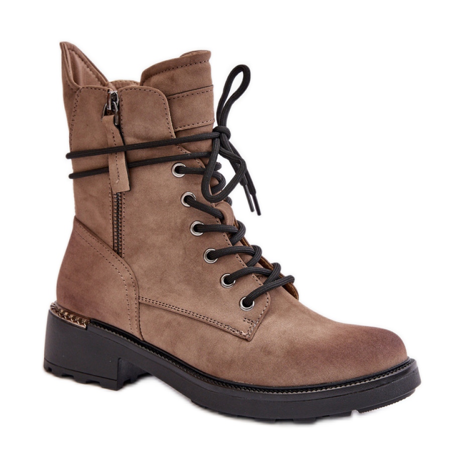 Evento Boots Suede -arbetare med en dekorativ beige dragkedja är ett utmärkt val för varje fashionabla kvinna som vill kombinera stil med komfort. Dessa stövlar är gjorda av högkvalitativa ekologiska läder som imiterar mocka, och ser eleganta ut och deras universella färg gör att de matchar många stilar.