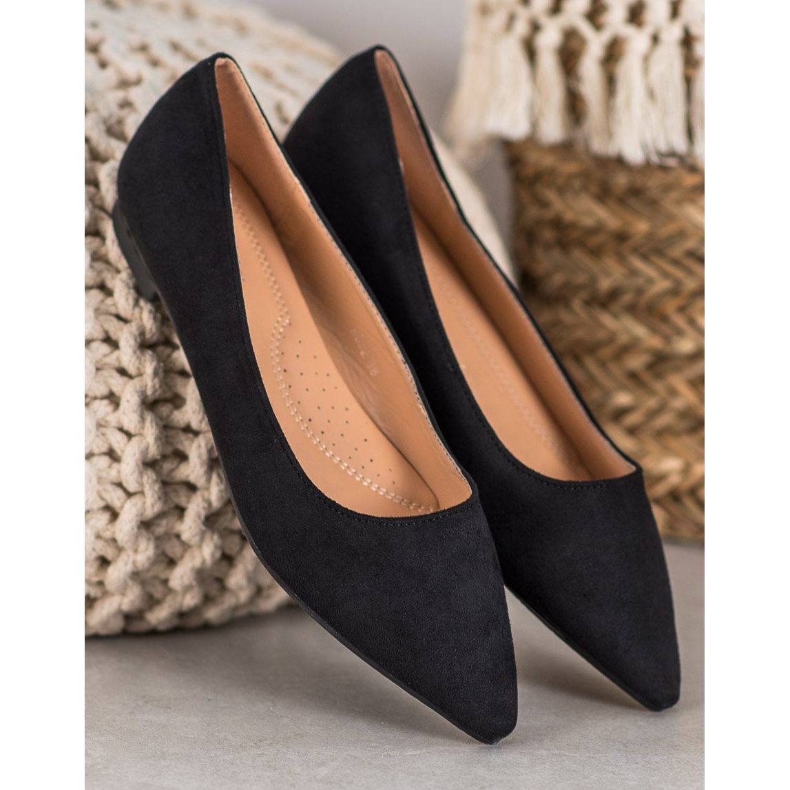 Upptäck elegans och komfort med SHELOVET balettlägenheter i svart. Dessa klassiska spetsiga skor är gjorda av högkvalitativt eko-mockaläder, vilket säkerställer en perfekt passform och komfort för hela dagen. Den lätta, släta sulan och den subtila designen lägger till elegans, vilket gör dem till en perfekt passform för alla stilar - både avslappnad och mer formell.