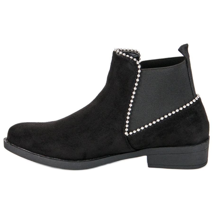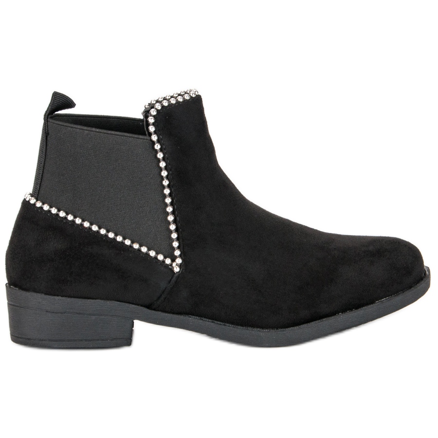 Upptäck perfektion i en klassiker med våra svarta Chelsea-stövlar i mocka som kombinerar komfort med moderiktig design. Dessa eleganta skor med platt sula, dekorerade med känsliga strass och ett originalt elastiskt band baktill, är perfekta för både vardagsbruk och kvällsutflykter.
