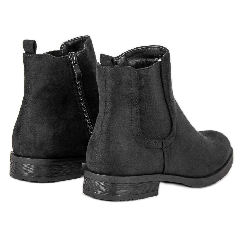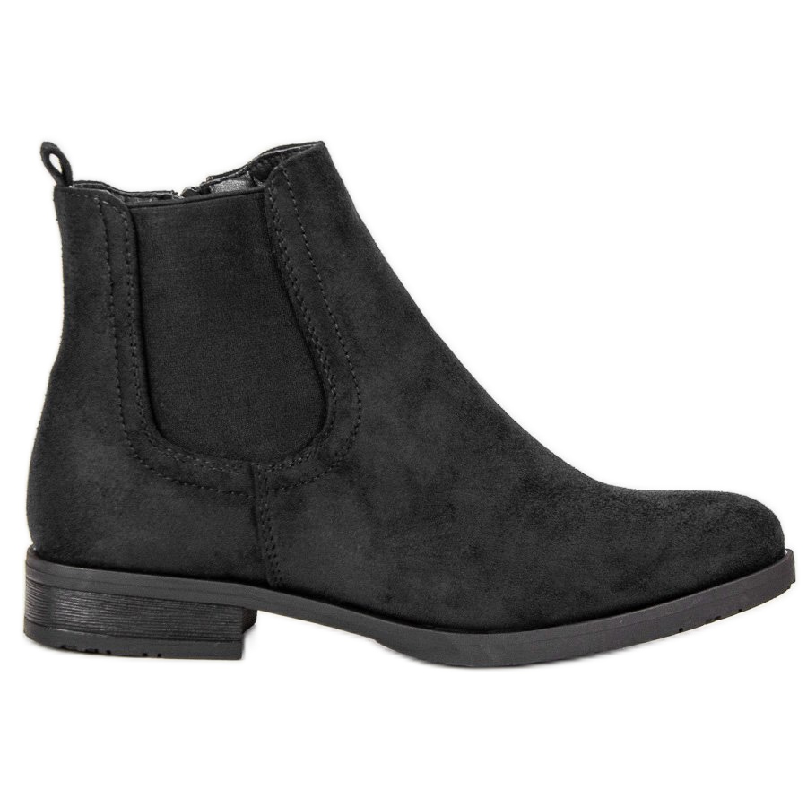 Vi presenterar eleganta Chelsea-stövlar i mocka i en klassisk svart färg, som passar perfekt in i höst- och vinterstyling. Dessa ankelboots för kvinnor är gjorda av högkvalitativ eko-mocka och kombinerar stil och komfort.