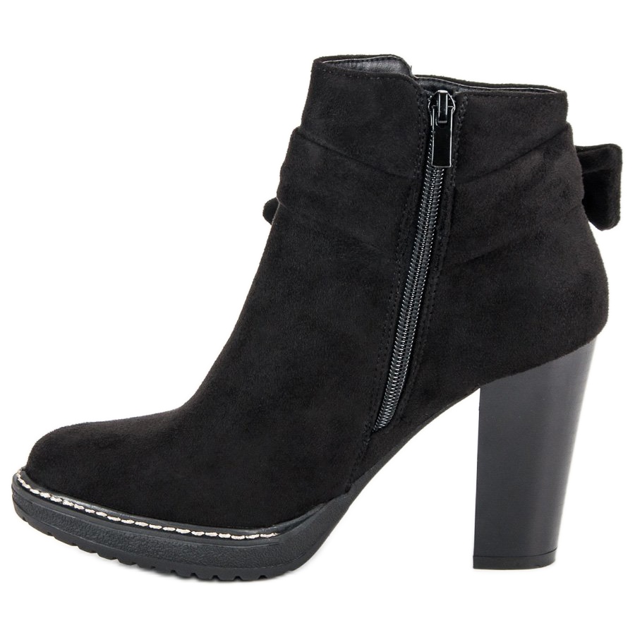 Skorna är inställda på en 9 cm hög blockklack, som optiskt förlänger benen och gör siluetten smalare. Blixtlåset i sidan gör dem inte bara lättare att ta på, utan lägger också till funktionalitet. Dessutom ger en elegant rosett placerad på sidan av skon en subtil accent som understryker den feminina charmen.