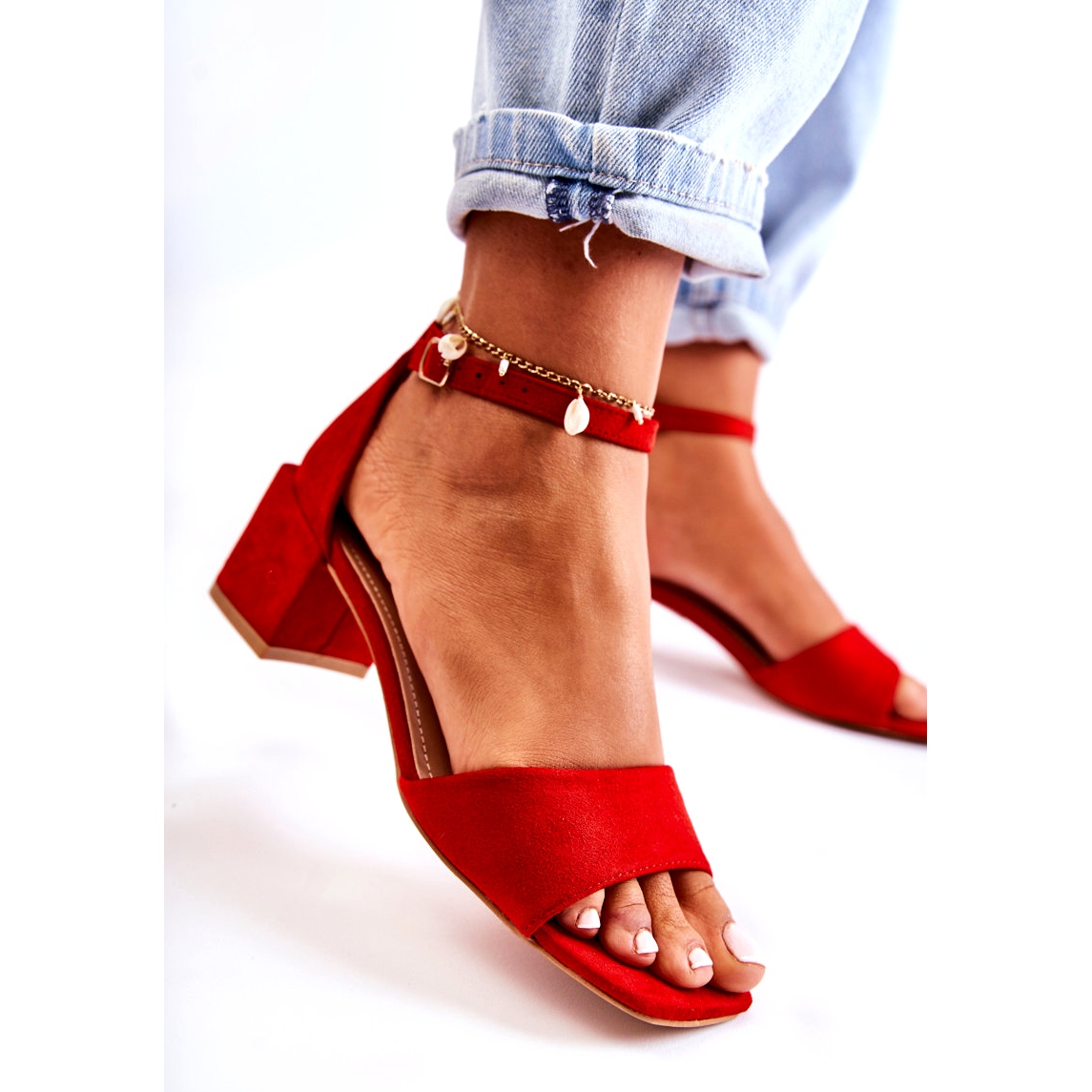 Detaljer: PS1 Mocka damsandaler på hög klack Röd Luciana