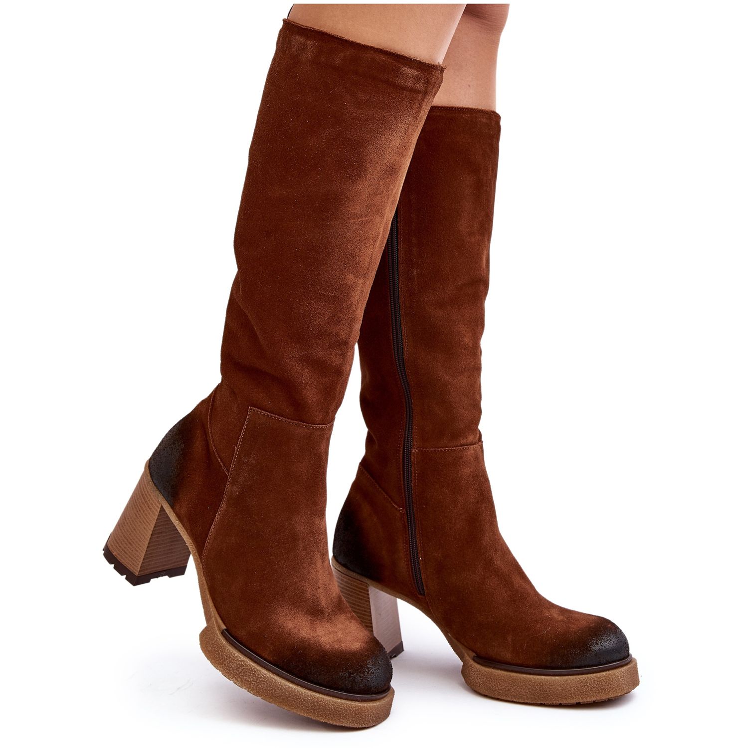 Upptäck elegans och komfort med mocka kvinnors stövlar på stolpen framför Lemar -knäet i brunt. Dessa unika stövlar är ett bra förslag för kvinnor som värderar både fashionabla utseende och komfort. Tillverkade av naturligt mocka läder kännetecknas inte bara av högkvalitativa material utan också en noggrann finish.