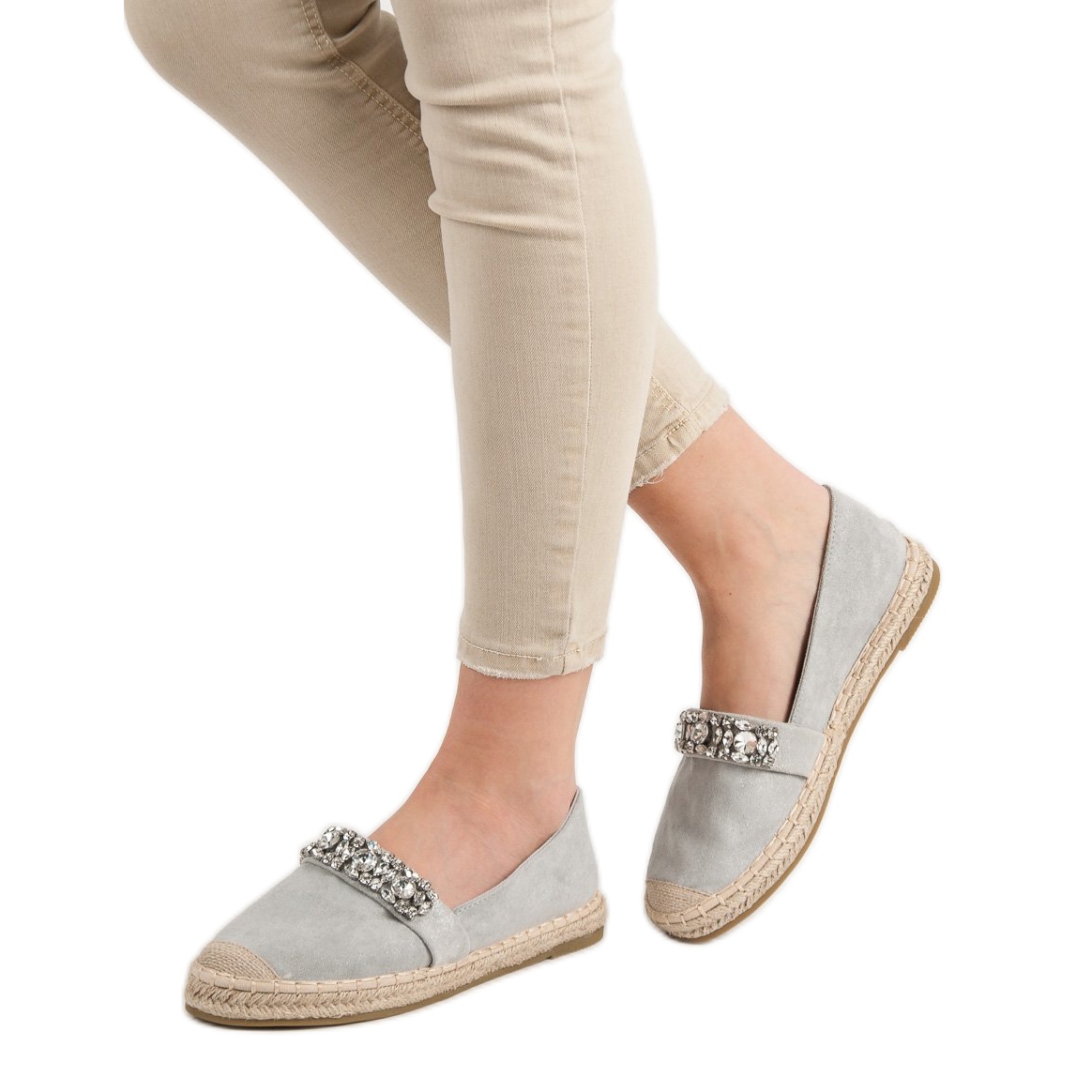 Bestelle Bestelle Mocka Espadrilles Med Kristaller grå