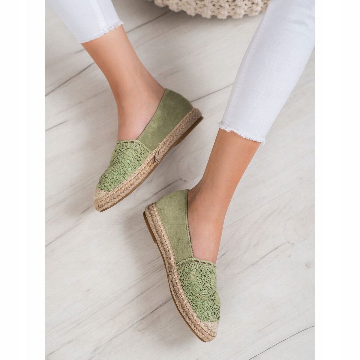 Information: Small Swan Mocka Espadrilles med spets grön