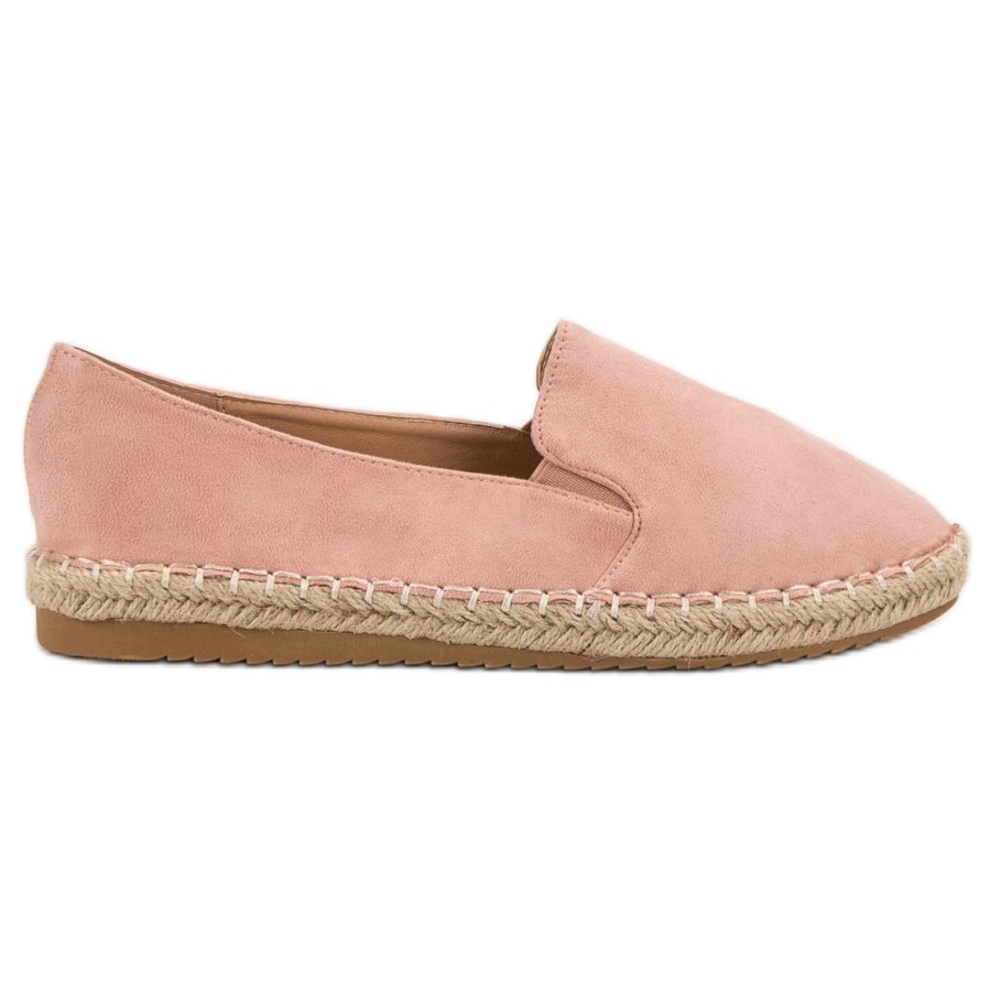 Espadrillor kännetecknas av en smakfull, rund tå och en uppbyggd, mjuk häl, vilket säkerställer utmärkt stabilitet och bärkomfort. Deras minimalistiska design i en nyans av delikat rosa gör att de matchar många avslappnade stilar, perfekta för vardagsbruk.