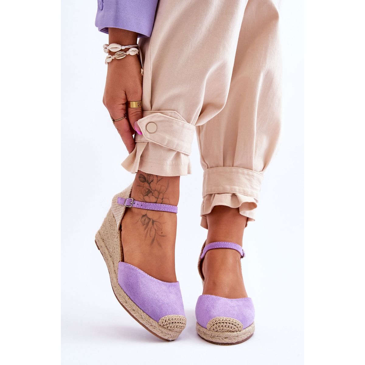 Detaljer: FJ1 Mocka Espadrilles Wedge Sandaler Lila Cammer purpur