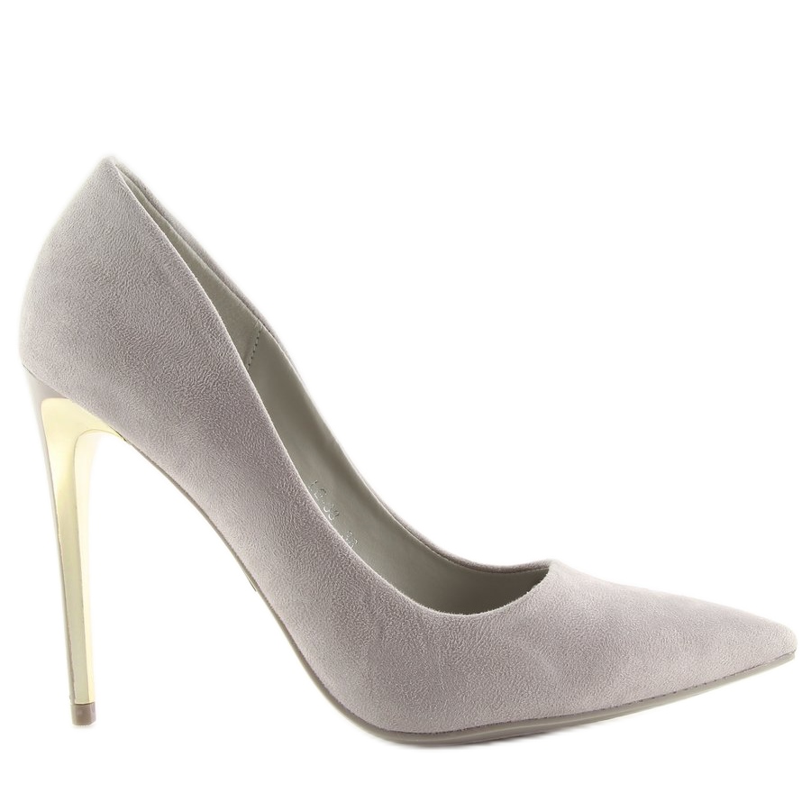 Vi presenterar höga klackar i mocka med en unik guldklack LE-08 i grått. Dessa eleganta pumps är det perfekta valet för kvinnor som värdesätter stil och klass. Skorna är gjorda av högkvalitativt ekologiskt mockaskinn och njuter av sin släta textur och minimalistiska design.