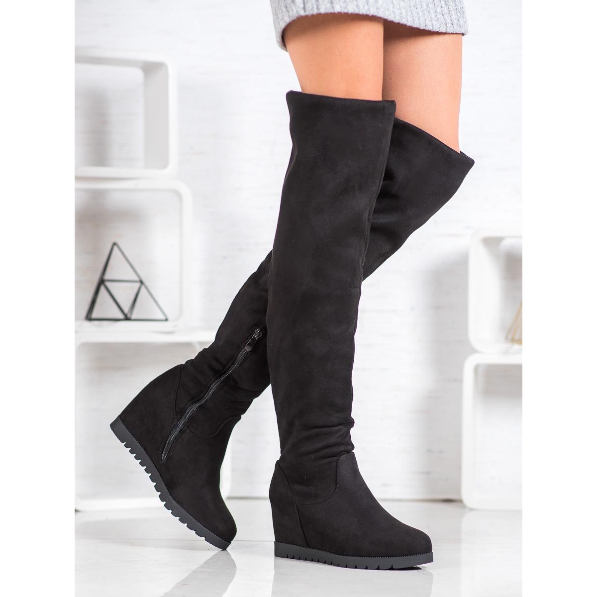 Upptäck elegans och komfort med kilstövlar i mocka från SHELOVET. Dessa unika skor, gjorda av ekologiskt läder med mockafinish, designades för kvinnor som värdesätter både stil och komfort. Ovandeln ovanför knäet i en universell svart färg gör att dessa stövlar perfekt matchar en mängd olika stilar - från avslappnad till mer formell.