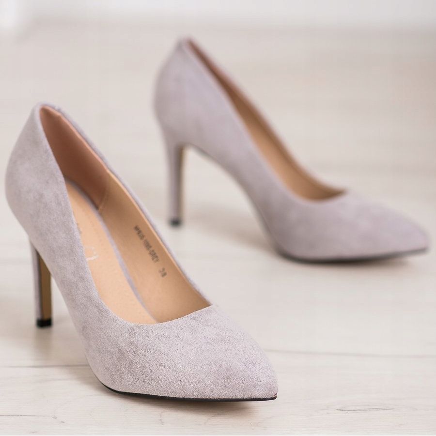 Vi presenterar gråa högklackade skor från Evento - ett elegant val för varje kvinna som vill kombinera stil och komfort. Dessa unika högklackade skor med en höjd på 9,5 cm väcker uppmärksamhet med sin minimalistiska design. De är gjorda av ekologiskt mockaläder, de är trevliga att bära och passar perfekt in i olika stilar.