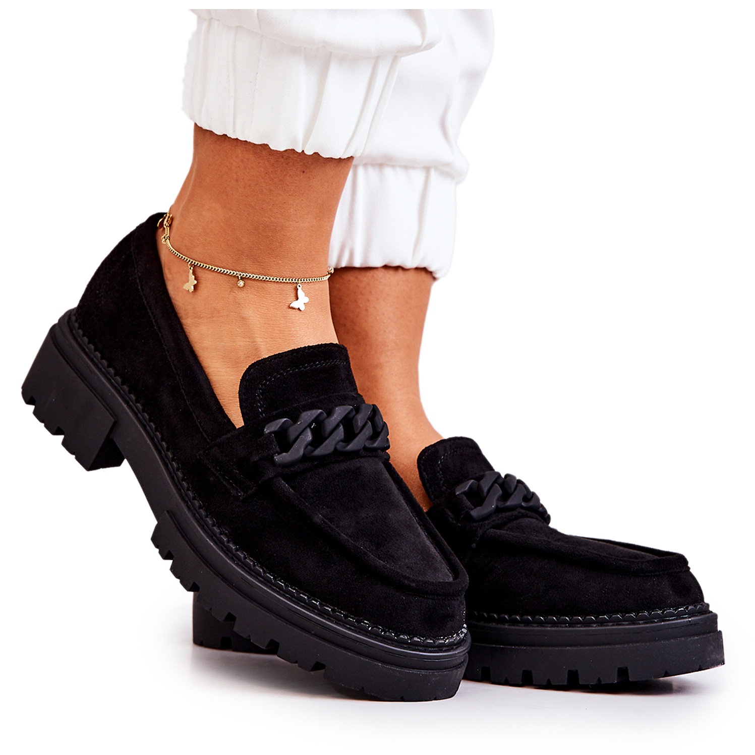 En ytterligare fördel är den imponerande dekorationen i form av en kedja, vilket ger dem en unik karaktär, vilket gör att du kan skapa många härliga stilar både för arbete och för sociala sammankomster. Tack vare den höga sulan och 4 cm hälen förlänger dessa skor inte bara figuren, utan ger också stabilt stöd under gång.