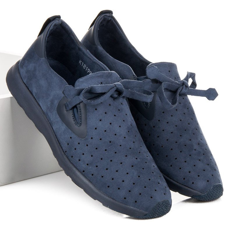 Vi presenterar sensationella mocka genombrutna slip-ons i blått, skapade av märket Kylie. Detta är ett perfekt förslag för kvinnor som värdesätter komfort och moderiktigt utseende. Skorna är tillverkade av högkvalitativt ekologiskt material vilket gör dem miljövänliga och extremt snygga.