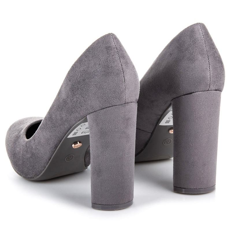 Pumparna har en slip-on-fäste, vilket möjliggör snabb och bekväm påsättning. Deras minimalistiska design utan mönster gör att de passar in i många olika stilar, och den neutrala grå färgen gör dem lätta att kombinera med andra garderobsartiklar.