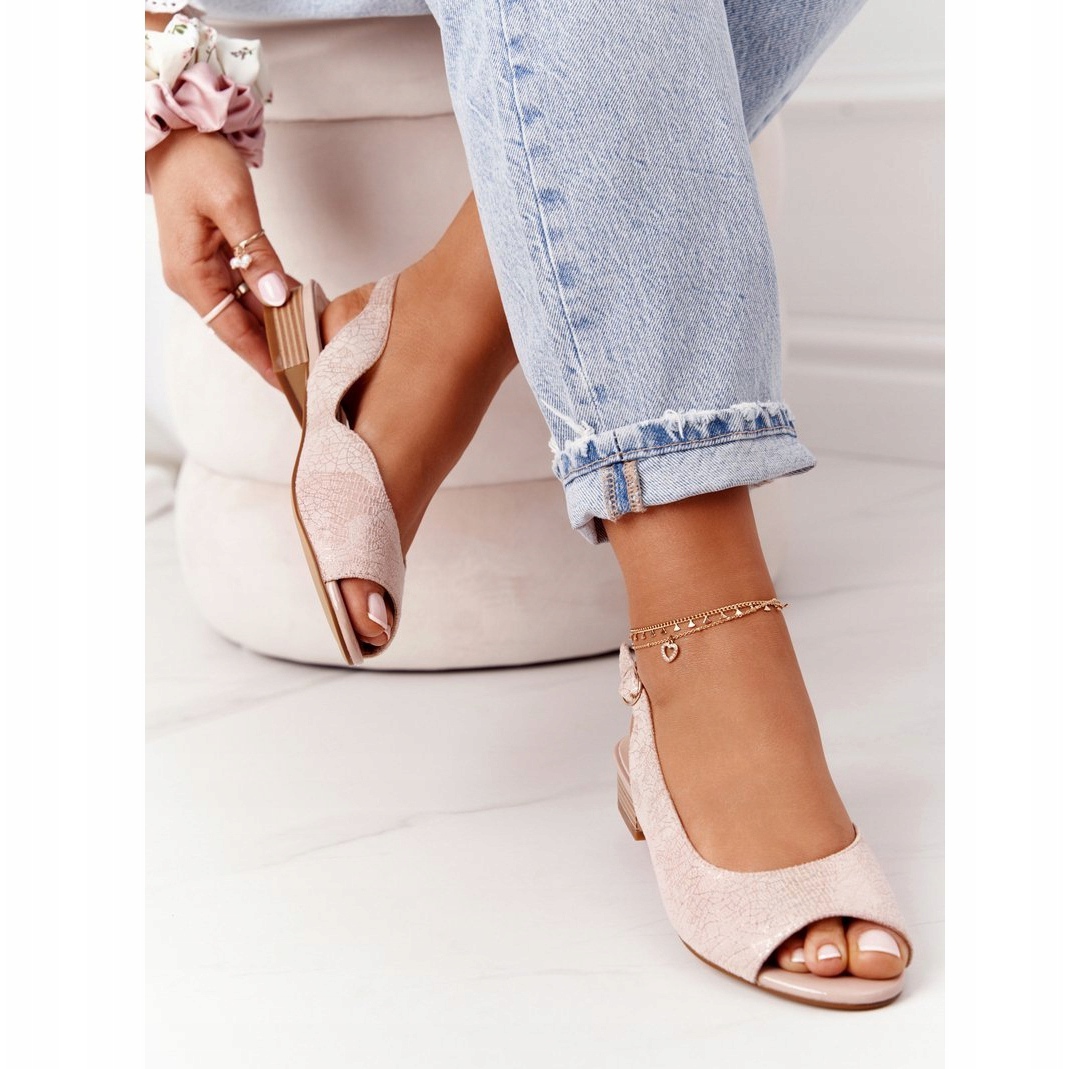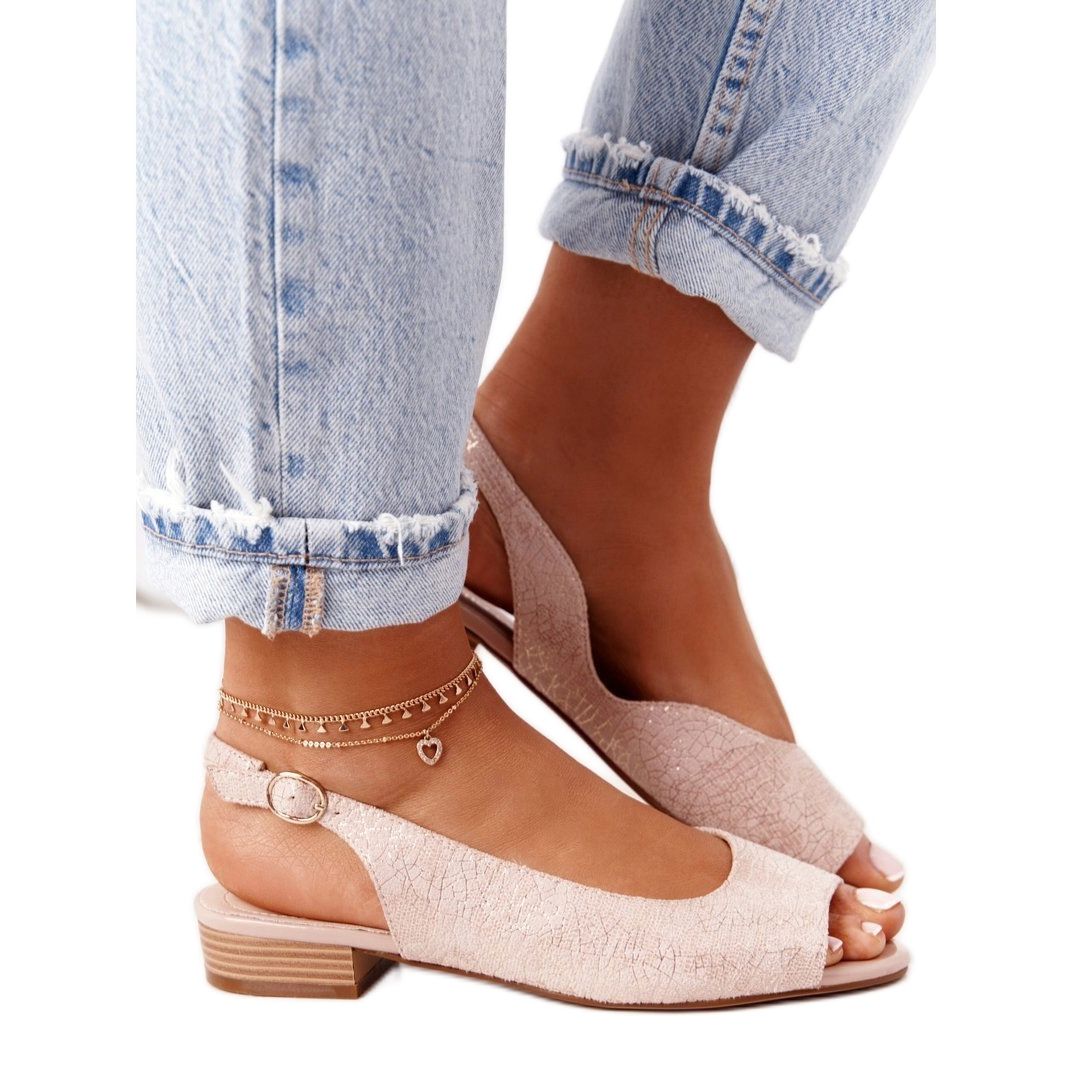 Dessa sandaler kännetecknas av ingen tå och ett spänne, vilket gör dem lätta att ta på och anpassa efter foten. Den puderrosa färgen i kombination med guldaccenter passar perfekt med många stilar - från avslappnad till mer formell.