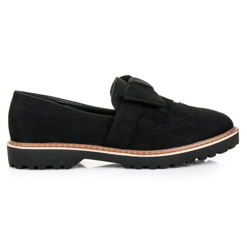 Den svarta färgen och avsaknaden av ett mönster gör att dessa loafers passar perfekt med en mängd olika stilar - från casual till mer formell. Innersulan gjord av ekologiskt läder säkerställer komfort under lång användning, vilket gör dem till dina bästa vardagliga följeslagare.