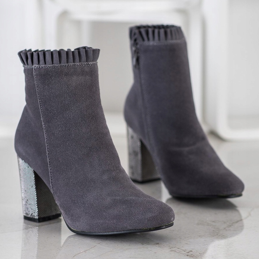 Upptäck elegans och unik stil med ankelboots i grå mocka med volanger från Goodin. Dessa långa skor som når över ankeln är ett perfekt val för kvinnor som värdesätter originalitet och en moderiktig look. Med en subtil design och tilltalande finish, lockar stövlarna uppmärksamhet och lägger till chic till varje styling.