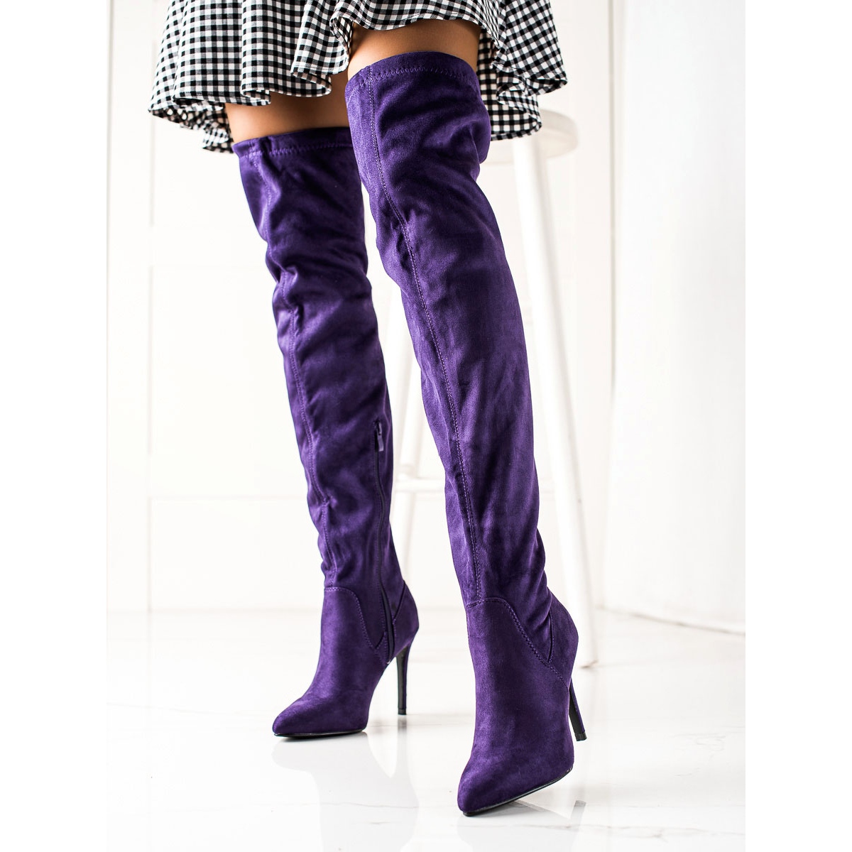 Detaljer: Small Swan Mocka stövlar på en hög klack purpur