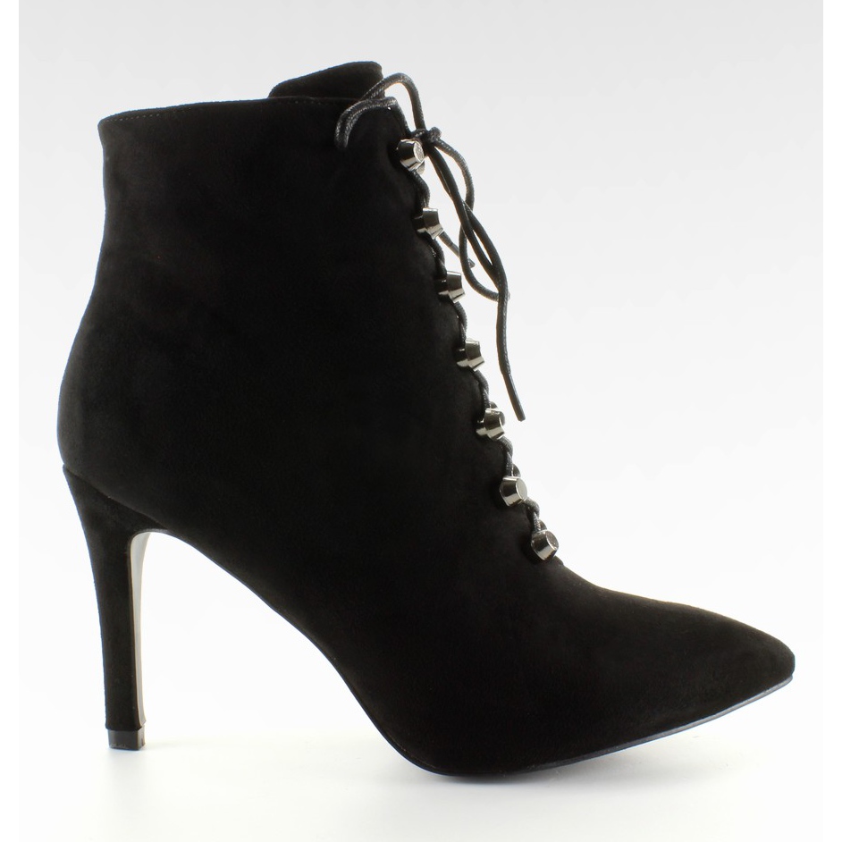 Eleganta, svarta damstövlar 8155 Black kombinerar en klassisk siluett med moderna detaljer. En smal 9,5 cm hög stilett och en mandeltå ger dem en chic karaktär, och det ekologiska ytterlädret i mocka framhäver kvaliteten på utförande. Istället för traditionell snörning används imponerande silverkottar, genom vilka spetsen vävs - en estetisk accent kombinerad med en praktisk dragkedja på insidan, vilket gör den lättare att ta på. Skorna är helt isolerade med päls, vilket gör dem perfekta för kallare dagar utan att ge avkall på feminin stil.
