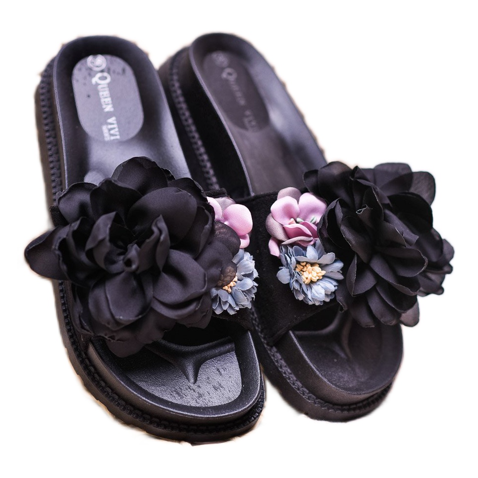 Queen Vivi Queen Vivi Mocka tofflor med blommor svart