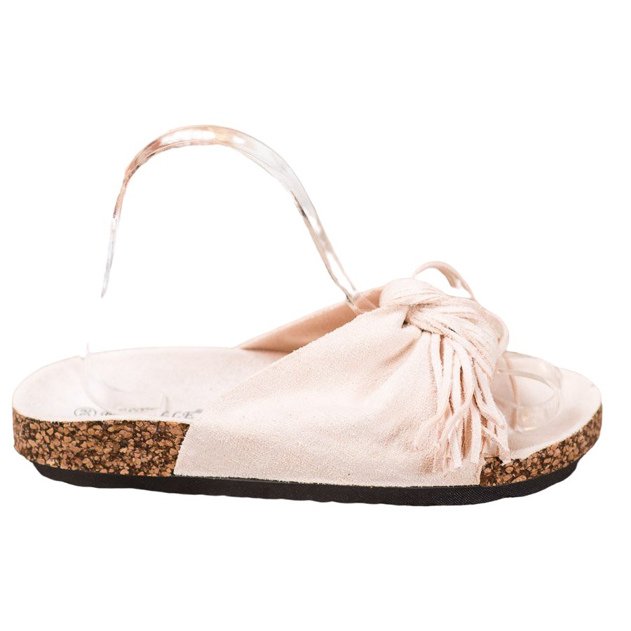 Bestelle Bestelle Mocka tofflor med fransar beige