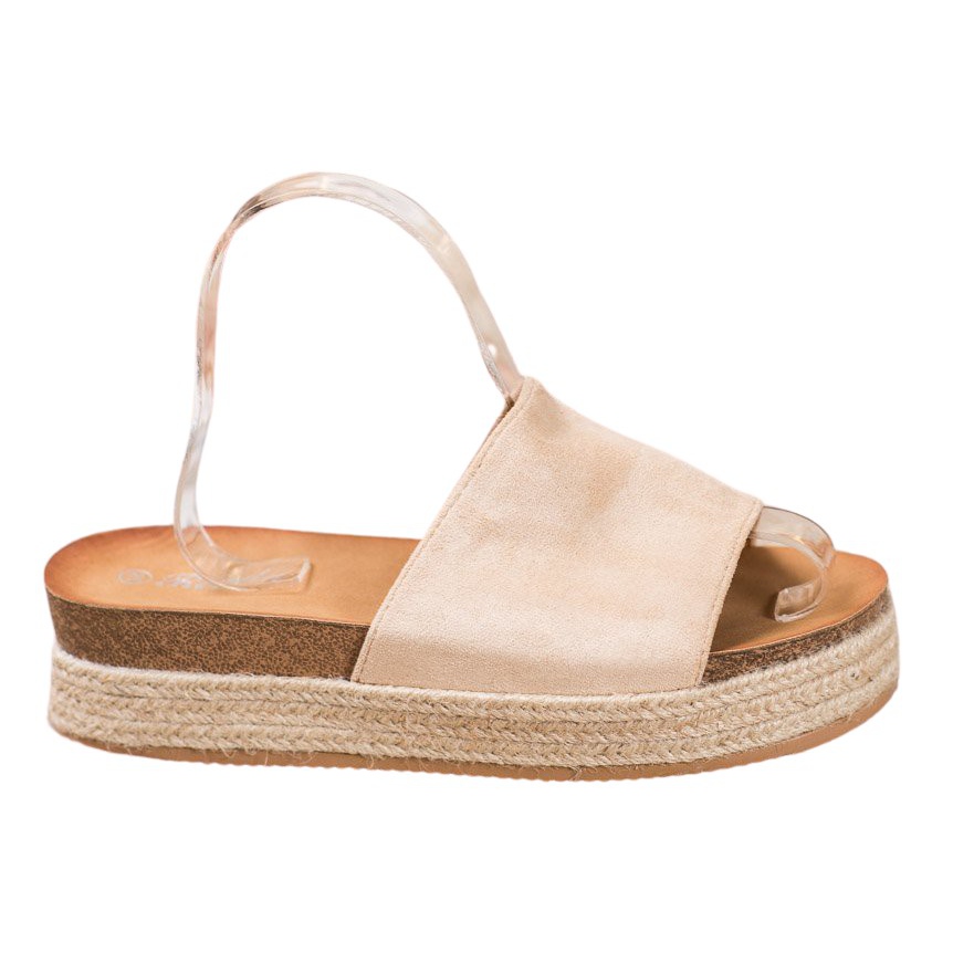 Upptäck elegans och komfort i ett tack vare imponerande plattformsflipflops från Renda. Dessa ljusbruna flip-flops är ett perfekt val för kvinnor som vill kombinera stil med komfort. Deras känsliga nyans harmonierar vackert med huden, förlänger benen optiskt och ger dem ett smalare utseende.