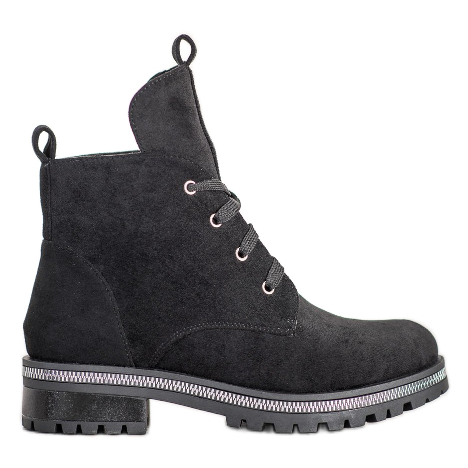 Dessa vandringskängor är gjorda av högkvalitativt ekologiskt mockaläder, vilket ger dem en lyxig karaktär, samt avsaknaden av ett mönster, vilket gör att de passar perfekt in i den klassiska avslappnade stilen. Deras universella svarta färg gör att de matchar många olika stilar - perfekta för jeans, klänningar, såväl som mer eleganta outfits för kallare dagar.