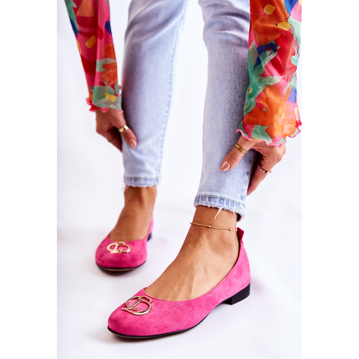 Detaljer: Mockaballerinor för kvinnor med Nicole-dekoration 2746 Fuchsia rosa