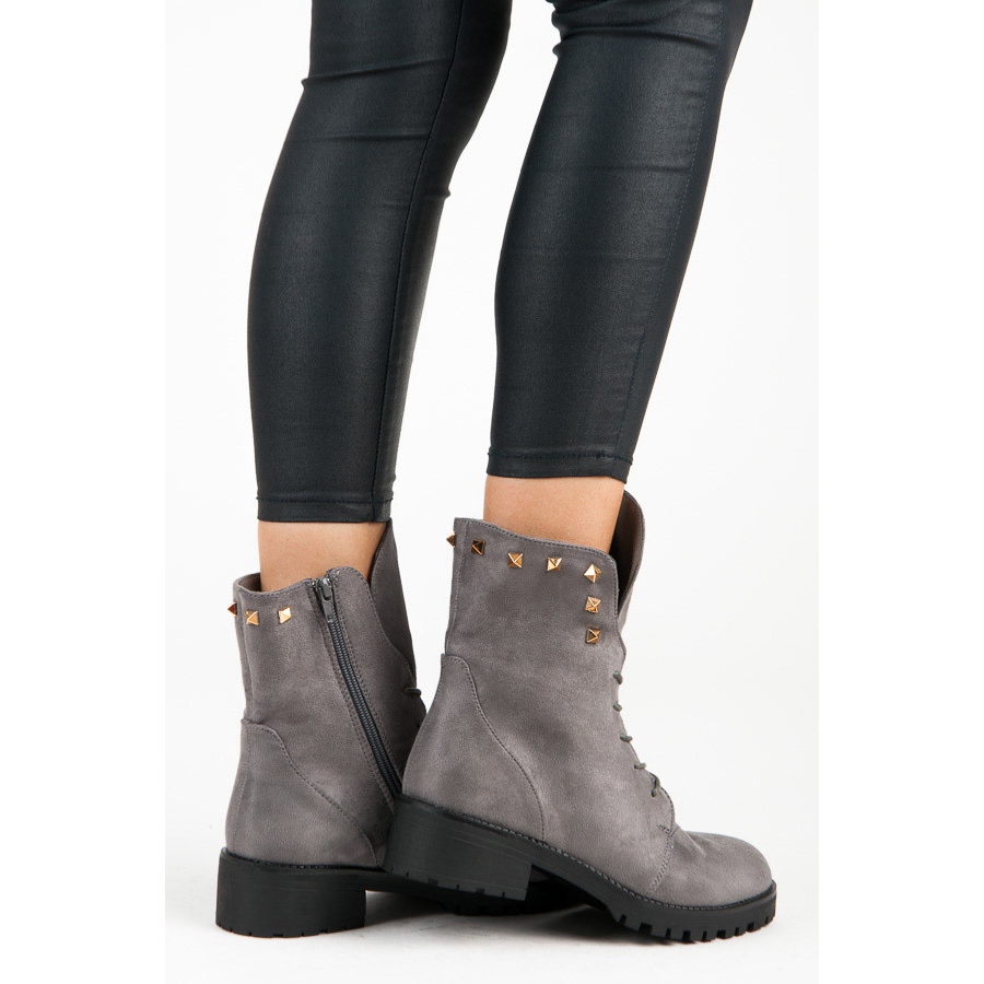 Vi presenterar mockaarbetare i en elegant grå nyans från varumärket Bestelle. Dessa snygga ankelstövlar för kvinnor kombinerar moderiktig design och funktionalitet, perfekt matchar de senaste fottrenderna.