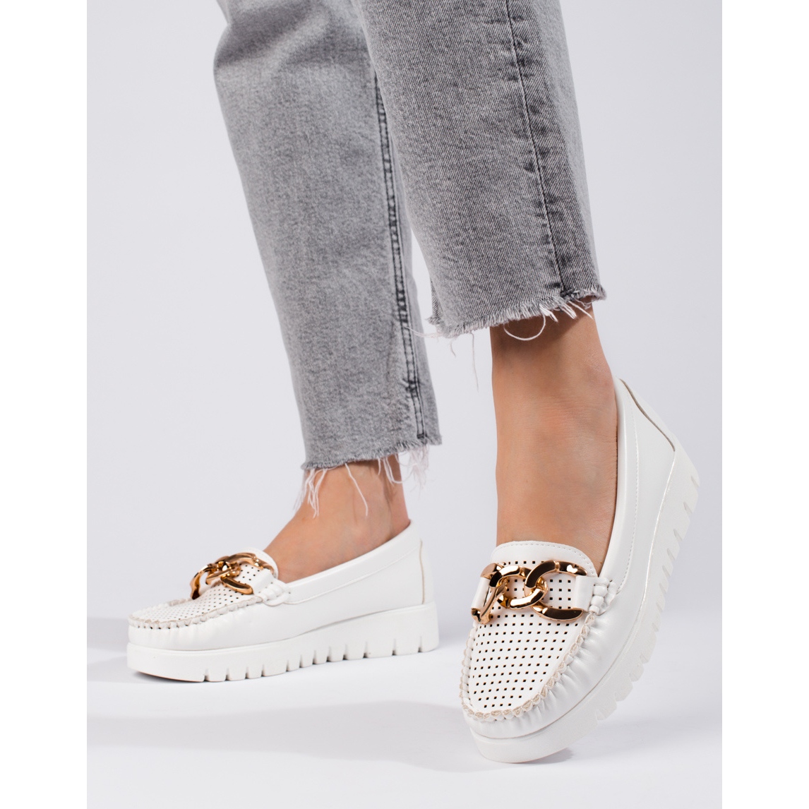 Information: W. Potocki Mockasiner på en tjock sula med en kedja Potocki vit