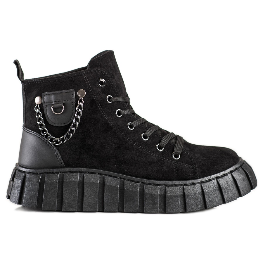 Dessa skor är gjorda av miljövänligt mockaläder och kombinerar elegans med modern design. Den dekorativa kedjan och strassarna ger dem en unik karaktär som kommer att utmärka varje styling. Tack vare den inbyggda, mjuka hälen och den runda tån garanterar sneakers komforten att bära hela dagen.