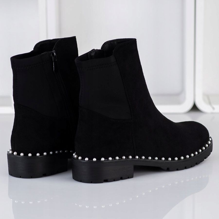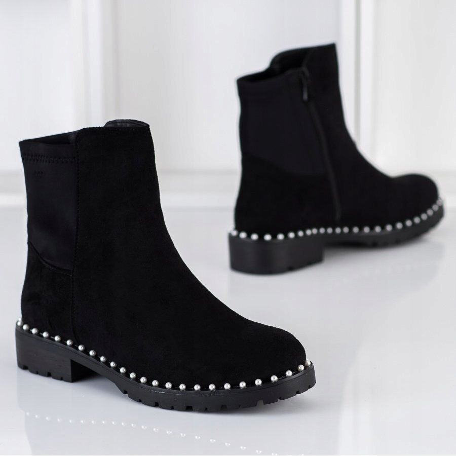 Stövlar i mocka med pärlor från tillverkaren Bestelle är ett måste i höst- och vintergarderoben för varje snygg kvinna. Dessa eleganta ankelboots i en klassisk svart färg är gjorda av ekologiskt läder av hög kvalitet som imiterar mocka, vilket understryker deras lyxiga karaktär.