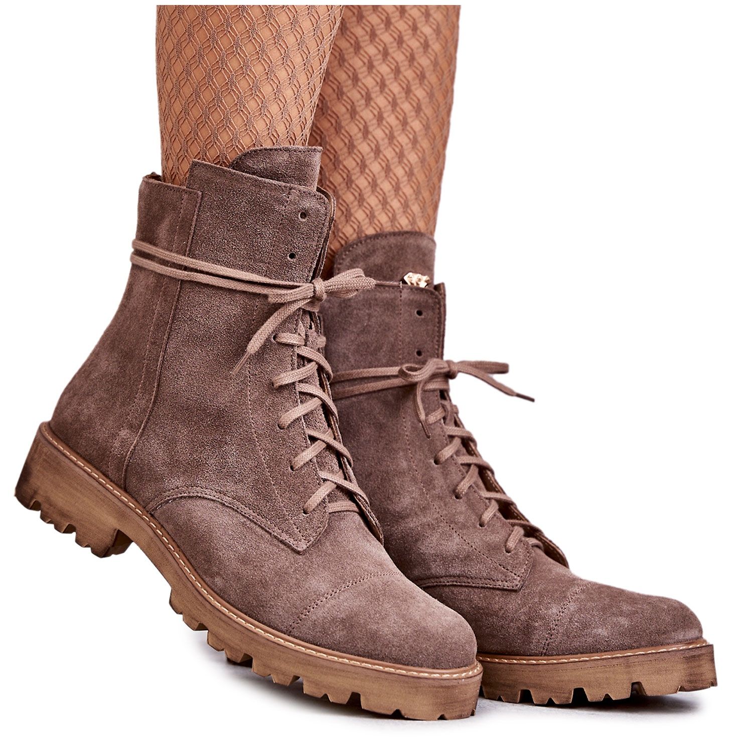 Eleganta, tidlösa kvinnors stövlar av högkvalitativt naturläder (mocka). Det klassiska snittskuret, delikata sömmar på den övre och den praktiska kombinationen av snörning med slottet på baksidan gör modellen både snygg och bekväm att använda. En massiv, icke -glidsula och en låg, stabil hälgarantikomfort under vardagens slitage.