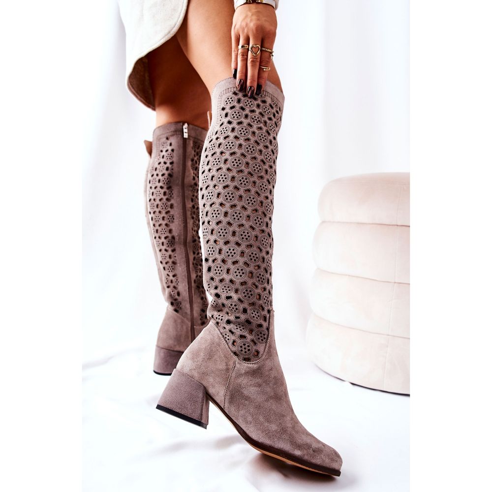 Upptäck elegansen och komforten hos ljusbruna PA2-stövlar med ett genombrutet Hekilea-mönster. Dessa unika skor är gjorda av högkvalitativt naturligt mockaläder, vilket gör dem inte bara snygga utan också hållbara. Ett intressant, genombrutet mönster ger dem en unik karaktär, och de spetsiga tårna framhäver deras kvinnlighet.