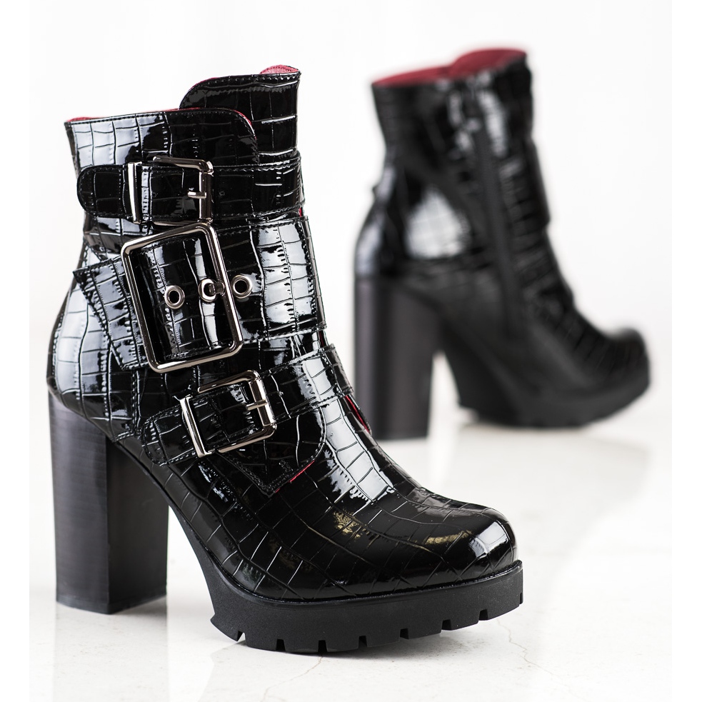 Erynn Fashion högklackade ankelboots i svart är det perfekta valet för varje elegant kvinna som vill kombinera stil och komfort. Dessa patentkängor är gjorda av ekologiskt läder av hög kvalitet och imponerar med sin minimalistiska men fashionabla design.